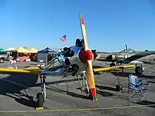 He was so successful in that endeavor that he started getting customers for his propeller designs who could not understand how Fahlin was able to create propellers which performed substantially better than what they thought were state-of-the-art designs.[4][6] Fahlin supplied propellers to private pilots and formula air racers. He would further manually optimize propellers for air racers in the field with the aid of a wood rasp which he used to remove material from the propeller.[7] One of his customers was Rudy Kling, an airplane racer, whose Folkerts Special won the Thompson Trophy in Cleveland, Ohio, using one of Fahlin's propeller designs.[6]