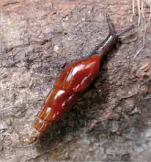 Oleacinidae is a taxonomic family of air-breathing land snails, terrestrial pulmonate gastropod mollusks in the clade Eupulmonata (according to the taxonomy of the Gastropoda by Bouchet & Rocroi, 2005).