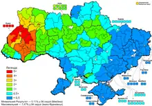 During the 2010 Ukrainian local elections Tyahnybok's party won between twenty and thirty percent of the votes in Eastern Galicia where it became one of the main forces in local government.[7][23]