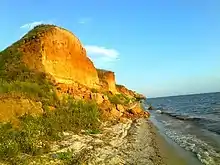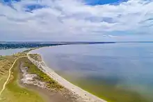 ![]() The western edge of the village (foreground), the Dnieper–Bug estuary (left) and lake (center right) | |
