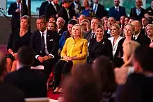 In September 2022, Zelenska was present as an invitee to Ursula von der Leyen's third State of the European Union address, where the EU Commission President rendered homage to her courage during the war in Ukraine.[62]
