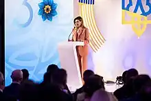 Zelenska also addressed the US Congress on the second day of her visit, becoming the first First Lady of another country to speak before the US Congress. She called for more military aid to the Ukrainian Armed Forces to protect the country from Russian invasion.[56][57]