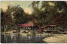 In 1899, around 50 acres were purchased by the Dusenbury brothers of New Lexington, Ohio.[4][5] They immediately added a large casino with a theater[6][7] just north of the ravine, more bowling alleys, and a fun house attraction called the "Crystal Maze."[8] Later, they built a "Water Toboggan"[9][10] and a roller coaster called "The Figure Eight."[1] The 1904 World's Fair was held in St. Louis. At its conclusion, the Dusenbury brothers purchased the "Japanese Gardens" exhibit and installed it at Olentangy Park as "Fair Japan."[11][12] In 1907, they opened the second Dancing Pavilion, expanding it in 1914 and 1920, making it the largest in the state.[13][14][15]