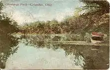 In 1895, the Columbus Railway, Power and Light Company purchased "The Villa" at the northern end of the company's North High Street trolley line.[1] The company hoped to use the park to increase the ridership on the weekend.[2] Electric lighting was added to the park in 1896.[1] That same year, the company held a naming contest resulting in the park being named "Olentangy Park" by an anonymous "Volunteer."[3]