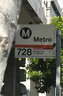 Bus service throughout Olympic Boulevard is served between Santa Monica and Century City by Santa Monica Transit line 5, between Century City and Downtown LA by Metro Local line 28, and from The Fashion District east by Metro Local lines 62 and 66.[1]