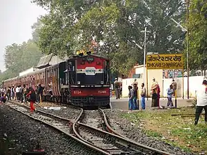 Omkareshwar Road railway station is a small railway station in Khandwa district, Madhya Pradesh. Its code is OM. It serves Omkareshwar town. The station consists of two platforms. The platforms are not well sheltered. It lacks many facilities including water and sanitation.[1][2] The station is situated on the 1,000 mm (3 ft 3+3⁄8 in) metre gauge Akola–Ratlam rail line, which is the under gauge conversion. Once finished will provide vital connectivity between Indore with rest of Northern India.