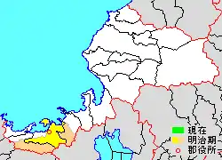 Map showing original extent of Onyū District in Fukui Prefecture:
