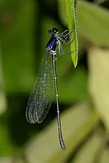 Onychargia atrocyana[3][1] a species damselfly in the family Platycnemididae. This species is commonly known as the marsh dancer or black marsh dart.[4][5] It is found in Asia: Bangladesh, China, Hong Kong, Indonesia, India, Sri Lanka, Myanmar, Malaysia, Philippines, Peninsular Malaysia, Singapore, Thailand, Viet Nam.[1][6]
