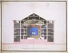 The Grand Théâtre de Dijon is located at the Place du Théâtre. It was inaugurated on 4 November 1828 with the play Les deguisements, ou une folie des grands hommes, especially written for the occasion by the Dijon-born poet Charles Brifaut. The theatre was designed by Jacques Cellerier (1742–1814) and Simon Vallot (1774–1850) in the Neo-classical style with an interior modelled after of those of Italian opera houses. In 1975 its exterior was declared a monument historique of France. The theatre's last major restoration was in 2005, and it now has a seating capacity of 692.[1][7]
