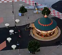The Great Park Balloon is the park's signature attraction. On July 14, 2007, the balloon ride—designed and operated by Aerophile SA—was the first attraction to open in the park. It transports visitors to a height of 500 feet (150 m) for a panoramic view of the county and the construction of the park.[10] The balloon's gondola can fit 25–30 people, large enough to bring up a class of students.[11]