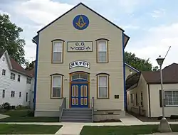 Social and fraternal organizations have played a major role in the community and the social history of Orangeville.[3] There have been several organizations in Orangeville throughout its history and in 1876 the local Ancient Free and Accepted Masons (AF and AM) Lodge erected the Orangeville Masonic Hall. Though the building was originally constructed to serve as the meeting hall for the local AF and AM Lodge, from its opening it has always been used by all of Orangeville's fraternal organizations.[3]