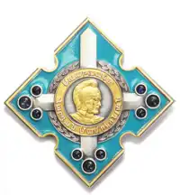 The ribbon of the order is azure blue.