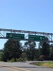 Oregon Route 18 is a state highway that runs between the Oregon Coast, near Lincoln City, and Newberg. OR 18 traverses the Salmon River Highway No. 39 of the Oregon state highway system,[1] named after the river alongside its westernmost segments.