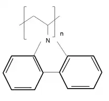 The vast majority of the polymers are based on carbazole containing polymers like poly-(N-vinyl carbazole) (PVK) and polysiloxanes (PSX). PVK is the well studied system for huge varieties of applications.[11] In polymers, charge is transported through the HOMO and the mobility is influenced by the nature of the dopant mixed into the polymer, also it depends on the amount of dopant which may exceed 50 weight percent of the composite for guest-host materials.[12] The mobility decreases as the concentration of charge-transport moieties decreases, and the dopant's polarity and concentration increases.[13]