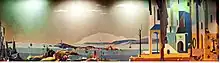 Some of the Renovators were influenced by surrealism, like vivarian painter Maruxa Mallo, who had strong ties with surrealists such as Bretón, Lorca and Buñuel. She was far from his homeland, but the Galician sea was included as a theme in her work. During the fascist uprising, Mallo was in Vigo and managed to escape to Portugal. With the help of Gabriela Mistral, Chilean ambassador in Lisbon, could travel to Americas, where she was in touch with Seoane.[36] Other artists marked by the war were Francisco Miguel, killed in 1936; he worked with Siqueiros and illustrated works by Borges and Mistral. The painter Urbano Lugrís, son of Lugrís Freire, an intellectual contrary to Franco, was forced to take the side of fascism, like other artists.[37] He also worked on set designs and architecture, such as the Surrealist chapel of Magi, in Bueu.[38]