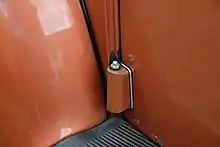 A less common design has a few names including 'button head', 'threepenny bit', 'flat' and 'tat head'. These are a larger nipple head with a flat sealing surface which overhangs the body of the nipple allowing the grease gun end to be hooked onto the nipple with a sliding action which wipes the nipple surface as it's attached. The grease gun hose is usually at a sharp angle (e.g. 70-90°) to the axis of the nipple but can be approached from any azimuthal angle. It is not possible for grease pressure to force this type of connector away from the nipple.