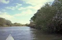 Oso Creek is entirely located in Nueces County. The creek rises near the western edge of Corpus Christi 3 mi (4.8 km) northeast of Robstown in northern Nueces County (at 27°49' N, 97°37' W) and runs southeast for twenty-eight miles to its mouth on Cayo del Oso, three miles southwest of Corpus Christi Naval Air Station (at 27°39' N, 97°21' W). It traverses flat to rolling terrain surfaced by dark, calcareous clays that support mesquite, grasses, and cacti. The stream has been identified as the one named La Purísma Concepción by Capt. Joaquín Orobio y Basterra during his exploration of the Gulf Coast in 1747. Oso Creek, along with Oso Bay, serves as a boundary that separates the Southside and Flour Bluff districts of Corpus Christi.
