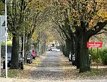 Karol Szymanowski alley, crossing the southern part of Ossoliński avenue is unique by the presence of a monumental perspective of 46 specimens of Swedish whitebeams, all listed as Polish monuments of nature.[7]