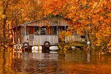 The river continues to be utilized for commercial navigation on a smaller scale than during its "steamboat" days.[18] It is fed by numerous small creeks containing endemic native fish such as killifish. Fishing remains popular in the river for black bass, white bass, bream, freshwater drum, and gar. Concerns about airborne mercury contamination in some areas discourage consumption of the fish for food. Fishing for rainbow trout is popular in the tailwaters of Lakes Ouachita, Hamilton and Catherine in and around Hot Springs, Arkansas.