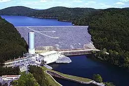 A 337-mile-long "Ouachita-Black Rivers Navigation Project" began in 1902, to create a navigable waterway from Camden, Arkansas to Jonesville, Louisiana, and when completed in 1924 included six locks and dams that were 84 feet wide and 600 feet in length, having from 3 to 5 tainter gates. Including the Black River the total navigable length is 351 miles.[12] The Ouachita-Black Rivers Navigation Project has less than a million tons of shipping annually which has the likely prospect of the future withdrawal of federal support. The project's system of dams and locks enhances the river's recreational use and regional water supply.[13]