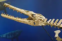 The Oulad Abdoun Basin stretches from the late Cretaceous to the Eocene and contains abundant marine vertebrate fossils, including sharks, bony fish, turtles, crocodilians, and other reptiles, as well as sea birds and a small number of terrestrial mammals.[3][4]
