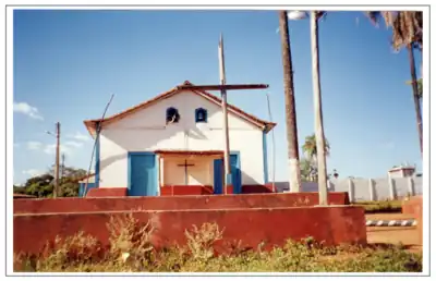 The reputation of the gold deposits on the margins of the Peixe River brought many adventurers to the Chapel of Rio do Peixe region who were responsible for building the Chapel of Saint Anne that, besides being the patron saint, was considered the owner of the place, showing the presence of Catholicism in a landscape where the houses or ranches were simple and small, made of wattle and daub technique, adobe, with a roof of buriti leaves with a ground floor, of one or two pitches and single storey.[22] The current one, the third one built, is located at the top of a square, a natural grassed elevated area, and has a facade with characteristics of the colonial period, formerly whitewashed and with turquoise blue frames, in a style that, at first, doesn't distinguish it from many others scattered throughout the recesses that sheltered populations in the Brazilian colonial period, and brings with it traits very characteristic of this period, such as having the local cemetery attached, being a great place of pilgrimage to the festivities celebrated there in July. In the mid-1980s, under the tutelage of the Goianésia Parish, the current temple underwent internal transformations, such as the removal of the original wood floor for a masonry and ceramic floor and lining with a plasterboard structure; two other rooms were added to the temple, one for the sacristy and the other to serve as the priests' dormitory during the festivities.[22]