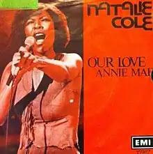 "Our Love" is a song by American singer Natalie Cole. Released as a single from her 1977 album Thankful, it spent 2 weeks at number one on the Hot Soul Singles chart in January 1978. It also was a hit on the pop charts, reaching number ten,[1] and has become one of her most familiar songs. It was certified gold in 1978, selling over one million copies.