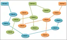 • Professional broadcasters and distributors have used a hybrid solution for many years. Distribution servers are not centrally installed, but are rolled out in a smart, decentralized way. A central management facility manages content distribution over multiple peer servers (also known as edge servers, or caches), strategically located near user swarms (generally popular access ISP networks), manages load balancing, redirection of users, view reporting and QoS. An example is Akamai.