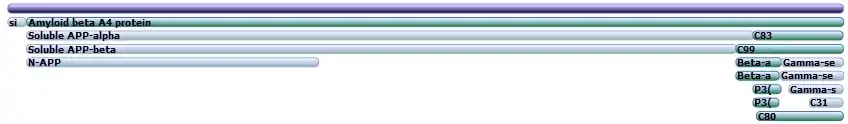 p3 peptide generates from the 17-40 or 17-42 sequence of the amyloid precursor protein (APP), which is a type I integral membrane protein concerned in neurons’ synapses in many human tissues. Under normal physiological conditions, APP is processed with three different proteolytic enzymes: α-, β- and γ-secretases. At first, APP molecule is cut by α-secretase or β-secretase, and it will produce two different molecules for each case. These products are respectively APPsα or α-CTFs, when cut by α-secretase, or APPsβ and β-CTFs, when processed by β secretase. APPs derivates are sent both to the extra-cell, while CTFs rest anchored to the plasmatic membrane. Then, α- and β-CTFs are processed by γ-secretase, resulting the peptides p3 and Aβ respectively and releasing in both cases a cytoplasmic peptide fragment known as the APP intracellular domain (AICD). Both p3 and Aβ are sent to the extracellular medium.[4]