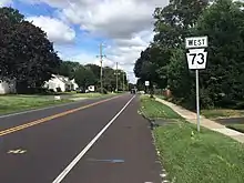 In the 1950s, PA 73 was routed onto the one-way pair of Robbins Street eastbound and Levick Street westbound between US 13 (Frankford Avenue) and the Tacony–Palmyra Bridge; the US 422 concurrency was removed as well. Also, the route was realigned to use Washington Lane between Church Road and Township Line Road. Between Reading and Mount Penn, US 422/PA 73 was shifted to the one-way pair of Perkiomen Avenue eastbound and Mineral Spring Road westbound while PA 73 was designated concurrent with westbound US 422 Alt. on Chestnut Street between Bingaman Street and US 422 in Reading.[22] By 1966, PA 73 was realigned at Oley to follow its current alignment west to PA 61 in Leesport, replacing a portion of PA 383 between east of Leesport and Maiden Creek. The former alignment of PA 73 became PA 625 between PA 23 in Blue Ball and US 222 (now US 222 Bus.) in Reading with most of the remainder between Reading and Oley becoming unnumbered except along the concurrencies with US 222 and US 422 Bus.[23][24] In the 1960s, PA 73 was rerouted at US 13 (Frankford Avenue) to follow Cottman Avenue, the one-way pair of Princeton Avenue eastbound and Cottman Avenue westbound past Torresdale Avenue, State Road, and New State Road to the Tacony–Palmyra Bridge.[25]