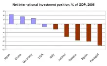 The term originated in the 1990s with the increased integration of the EU economies, and it was often used in reference to the growing debt and economic vulnerability of the Southern European EU countries.[1][3] It was again popularised during the European sovereign-debt crisis of the late 2000s and expanded in use during this period. In the 1990s to late 2000s, Ireland was not included in this term; the country was still in the midst of its "Celtic Tiger" period, with debt significantly below the Eurozone average and a government surplus as late as 2006. However, taking on the guarantee of banks' debt, the Irish government budget deficit rose to 32% of GDP in 2010, which was the world's largest.[9] Ireland then became associated with the term, replacing Italy or changing the acronym to PIIGS,[1][4][5][10] with Italy also indicated as the second "I".[11]