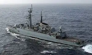 PNS Shah Jahan (DDG-186) was a Tariq-class destroyer in service with the Pakistan Navy since being recommissioned in 1994. Based on the British design, Type 21 frigate, she previously served in the Royal Navy as HMS Active as a general purpose frigate.[3]