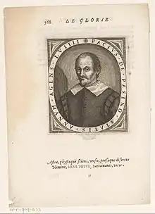 ![]() Portrait of Pace Pasini. From the book "Le glorie degli Incogniti", 1647 | |