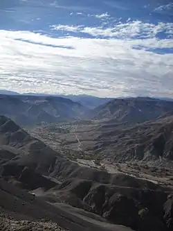 Pachica is a small town located in the Tarapacá ravine that dates back to the 18th century and originally was part of Peru. The town also has several tourist attractions like Infiernillo where you can find petroglyphs[3] and a construction of Tranque Pachica that was abandoned in the 1930s whose objective was to supply water to the towns of the Quebrada de Tarapacá.[4] The residents of Pachica are involved in agriculture, mostly the production of alfalfa and vegetables. Their houses built since the 80's are made of stone and woven cane.