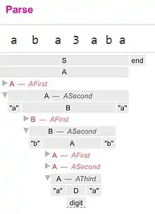 | Syntax tree | Action | Packrat Table | ||||||||||||||||||||||||||||||||||||||||||||||||||||||||||||||||||||||||