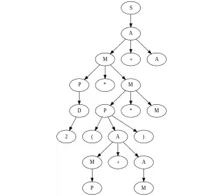 - Nonterminal symbols are indicated with capital letters (e.g., )