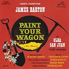Paint Your Wagon is a Broadway musical comedy, with book and lyrics by Alan J. Lerner and music by Frederick Loewe. The story centers on a miner and his daughter and follows the lives and loves of the people in a mining camp in Gold Rush-era California. Popular songs from the show included "Wand'rin' Star", "I Talk to the Trees" and "They Call the Wind Maria".