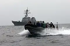 Its primary objective is to ensure the defence of the sea lines of communication of Pakistan and to safeguard Pakistan's maritime interests by executing national policies through the exercise of military effect, diplomatic and humanitarian activities in support of these objectives.[10][11] In addition to its war services, the Navy has mobilized its war assets to conduct humanitarian rescue operations at home as well as participating in multinational task forces mandated by the United Nations to prevent seaborne terrorism and privacy off the coasts.[12][13]