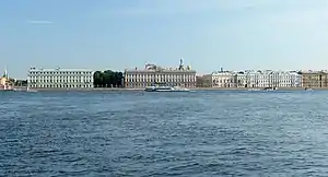 The Palace Embankment or Palace Quay (Russian: Дворцовая набережная, Dvortsovaya naberezhnaya) is a street along the Neva River in Central Saint Petersburg which contains the complex of the Hermitage Museum buildings (including the Winter Palace), the Hermitage Theatre, the New Michael Palace, the Saltykov Mansion and the Summer Garden.[1]