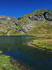 There is a shorter deviation, bypassing Lake Litteran. There are two alternative routes which both lead to the Rifugio Arp: the one on the right leads to the Alpeggio Palasinaz Inferiore, while the one on the left leads to the Alpeggio Superiore. After rejoining path 4, the path continues to Lago della Battaglia (2,487 m [8,159 ft]) - or Lacs de la Bataille - the first of the five lakes.[22] There is a small stone bridge here, which replaced the previous weir in 2006.[21]