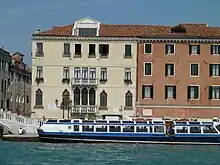 [1]Palazzo Mangiapane or Palace of Two Towers (Palazzo de Due Torri) or Palazzo Navager is a Gothic style palace located on the Riva degli Schiavoni #4145 in the sestiere of Castello, Venice, adjacent to the Ponte del Sepolcro, previously called the Bridge of Ca'Navager. It is best known for being the home, for about five years, of the poet Petrarch.