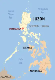 Pampanga's 1st congressional district is one of the four congressional districts of the Philippines in the province of Pampanga. It has been represented in the House of Representatives of the Philippines since 1916 and earlier in the Philippine Assembly from 1907 to 1916.[3] The district consists of the independent city of Angeles, the adjacent city of Mabalacat, and the municipality of Magalang. It is currently represented in the 18th Congress by Carmelo B. Lazatin II of the PDP–Laban and Lingap Lugud Capangpañgan.[4]