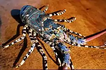 ![]() | Panulirus versicolor (Latreille, 1804) | painted rock lobster, common rock lobster, bamboo lobster, blue lobster, and blue spiny lobster | western Pacific and the Indian Ocean |
