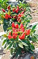These peppers are the fruit of an herbaceous annual plant of the family Solanaceae. It is short — 4–7 cm (1.6–2.8 in) — , triangular and pointed at the end (similar to a bottle cap[1] with a fresh weight of between 17 – 20 grams, a dry yield (whole pepper) about 18 – 20% and sweet. The collection is done in steps, three harvests, and is unique because the fruits grow erect, looking skyward.