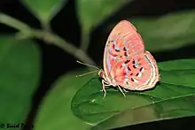 Paralaxita telesia, the common red harlequin, is a species in the butterfly family Riodinidae.