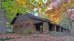 Camp Buckhorn was built by the CCC in 1936-1937 as a place for groups. It has a lodge, and 10 cabins for overnight guests. and[20] accommodates 40 people.[8] In 2011, the main lodge underwent renovations funded by Paris Mountain Friends, the state government, and local establishments.[20]