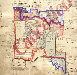 ![]() Early 20th Century cadastral map with highlights: The two sections of Amungula parish since 1909 | |||||||||||||||