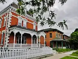 The Historic Park to Park District is a seven-block-long, three block wide section of homes that represent the Gothic, Victorian, and Tudor era. With a rich variety of architectural styles like Gothic Revival, Italianate, Second Empire, Eastlake Stick, Richardson Romanesque, Queen Anne, and Tudor. With two of the six parks within the District. Given its location adjacent to the central business district there are no historic commercial buildings located in its boundaries. Institutions in the district include buildings erected by local governments and churches.[2] The Lee County Courthouse (1842) and jail (c. 1850) are located across the street from the downtown area. A combination building houses the Fort Madison City Hall and a fire station (1873). The former St. Joseph's Catholic Church complex (various buildings from the 1850s to the 1920s) is located near Old Settler's Park, while St. Mary of the Assumption Catholic Church (1871), rectory (1876) and convent (1911) are located just west of Central Park. First United Methodist Church is associated with two sets of buildings in the district. Its original church built in 1888 now houses Joy Baptist Church. Their present church building was built in 1923. The present First Christian Church (1958) replaced an earlier church (1903) on the same property. Other denominations are represented by Union Presbyterian Church (1885) and Parsonage (c. 1890), St. John's Evangelical Church (1864) and Parsonage (1893), and St. Luke's Episcopal Church that was built as Hope Episcopal in 1857.[2]