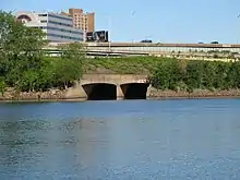The Park River is a tributary of the Connecticut River in Hartford, Connecticut. It was officially named the Park River in 1892 after Bushnell Park, through which it flowed in downtown Hartford. A local newspaper had advocated for that name rather than the “’Hog River’” name which was then in use.[1][2] Between 1940 and the 1980s, the 2.3-mile (3.7 km) river was buried by the Army Corps of Engineers to prevent the spring floods regularly caused by increased surface runoff from urban development.[3]