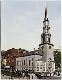 Park Street Church is a stop on Boston's Freedom Trail. The founding of the church is dated to 1804 when the "Religious Improvement Society" began weekly meetings with lectures and prayer.[3] The society organized the church on February 27, 1809. Twenty-six local people, mostly former members of the Old South Meeting House, wanted to create a church with orthodox Trinitarian theology.